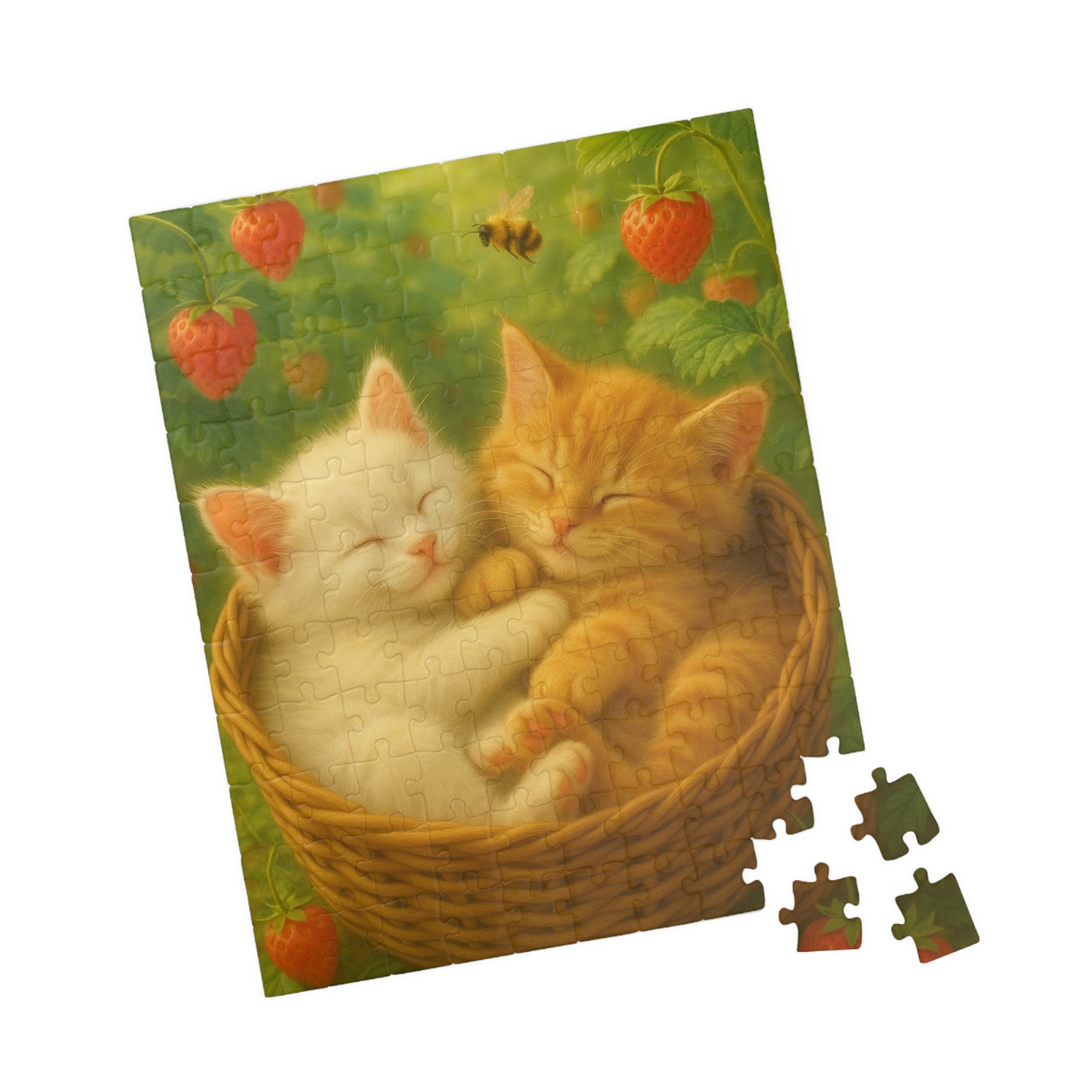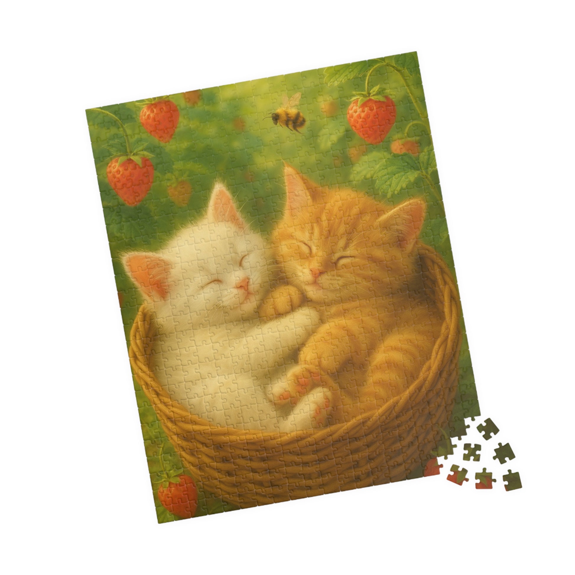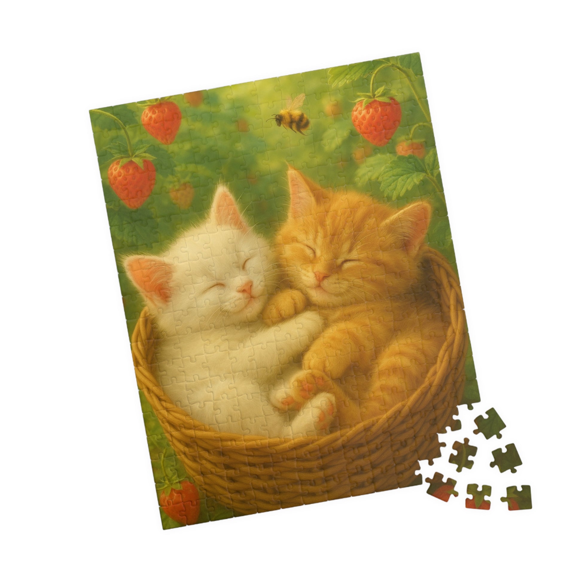 Dreaming in Strawberry Skies - One puzzle, two peaceful hearts. - 110 to 525 Pieces - Perfect Gift for Cat Lovers